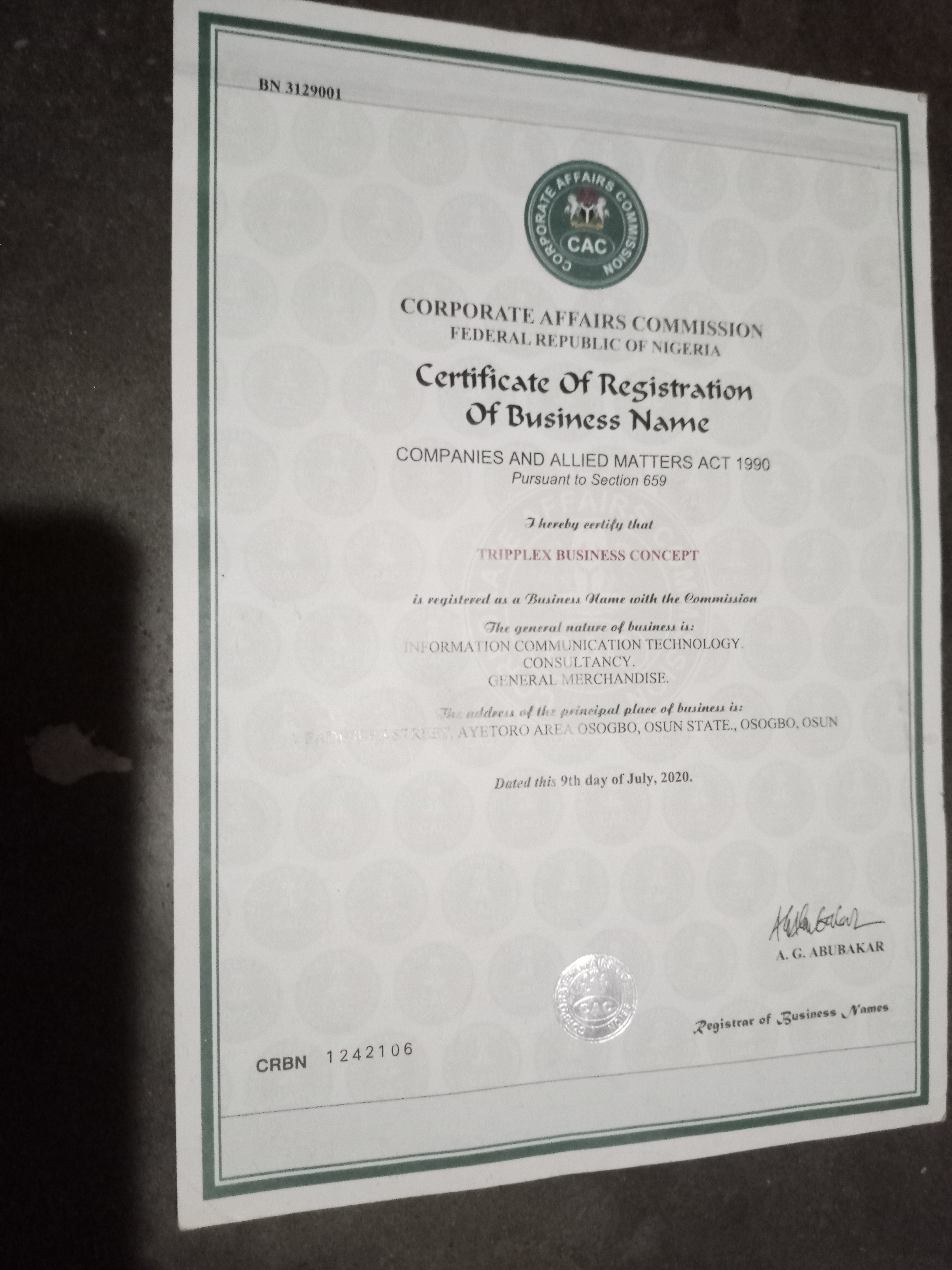 | Business Name | TRIPPLEX BUSINESS CONCEPT |